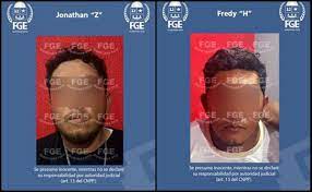 La Fiscalía General del Estado informó que los elementos policiacos capturaron a Fredy “H” y Jonathan “Z”, quienes fueron puestos a disposición del fiscal del Ministerio Público, por atentar contra una víctima menor de edad, con fines de explotación sexual