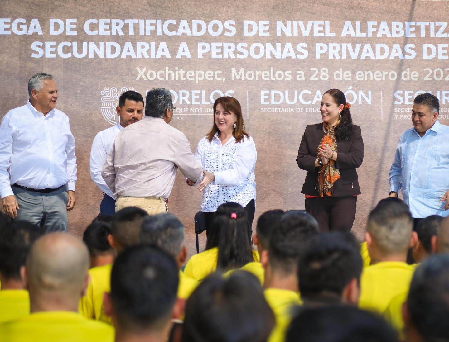 🔸 La gobernadora de Morelos resalta la importancia de la educación como herramienta de reinserción social y ofrece nuevas oportunidades a los internos a través de la Prepa Abierta.