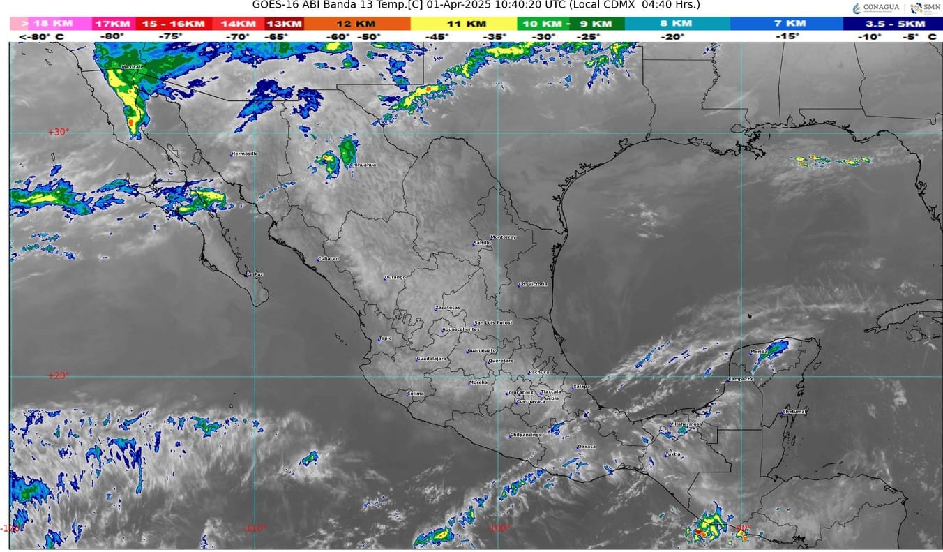 Continuará el ambiente diurno cálido a caluroso sobre gran parte de la República Mexicana, así como la onda de calor en zonas de Nuevo León (sur), Tamaulipas (suroeste), San Luis Potosí (norte, centro, sur y este), Querétaro (este), Hidalgo (noreste y este), Puebla (norte), Jalisco (centro, sur y sureste), Colima (este), Michoacán (oeste, centro y sur), Morelos, Guerrero (norte, oeste y este), Veracruz (centro y sur), Oaxaca (centro y este) y Chiapas (noroeste y centro).