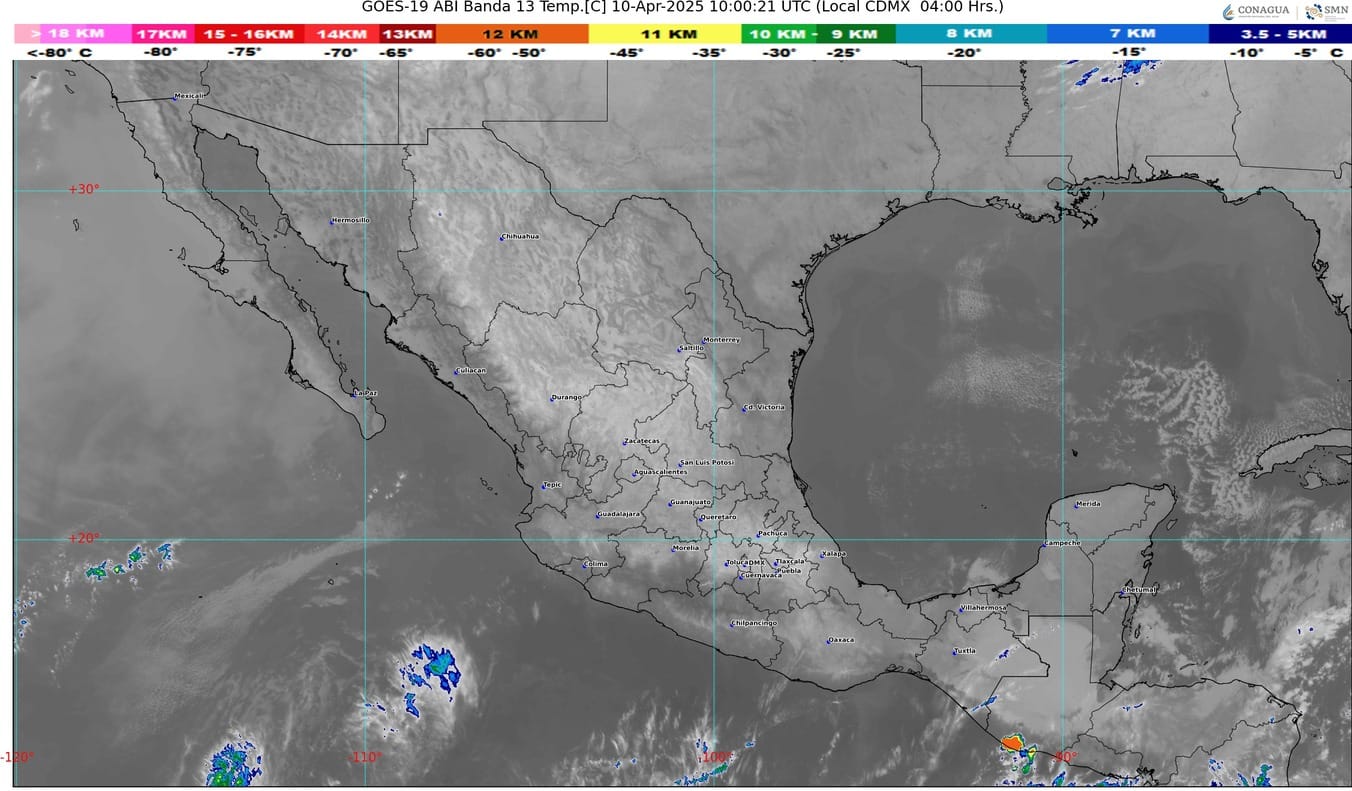 Por otra parte, un canal de baja presión sobre el occidente y centro del país, aunado al ingreso de humedad del océano Pacífico y golfo de México, originado por la corriente en chorro subtropical, generará lluvias e intervalos de chubascos en Oaxaca y Chiapas, así como lluvias aisladas en Michoacán, Guerrero, Estado de México (suroeste), Veracruz y Tabasco.