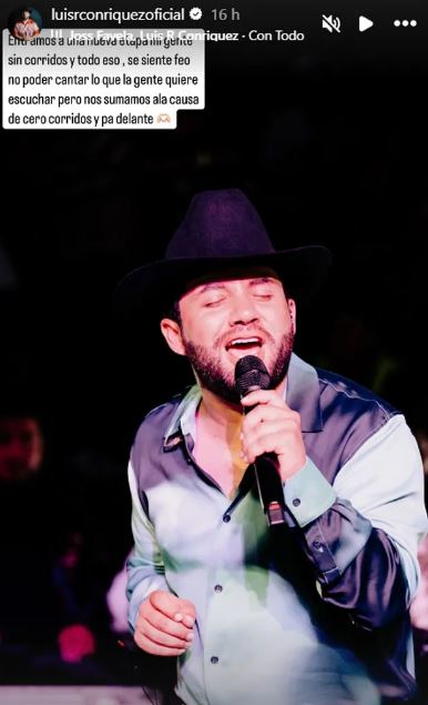 Por medio de sus historias de Instagram, Luis R. Conriquez confirmó su salida de los corridos tumbados debido a que está en una campaña llamada “cero corridos”.